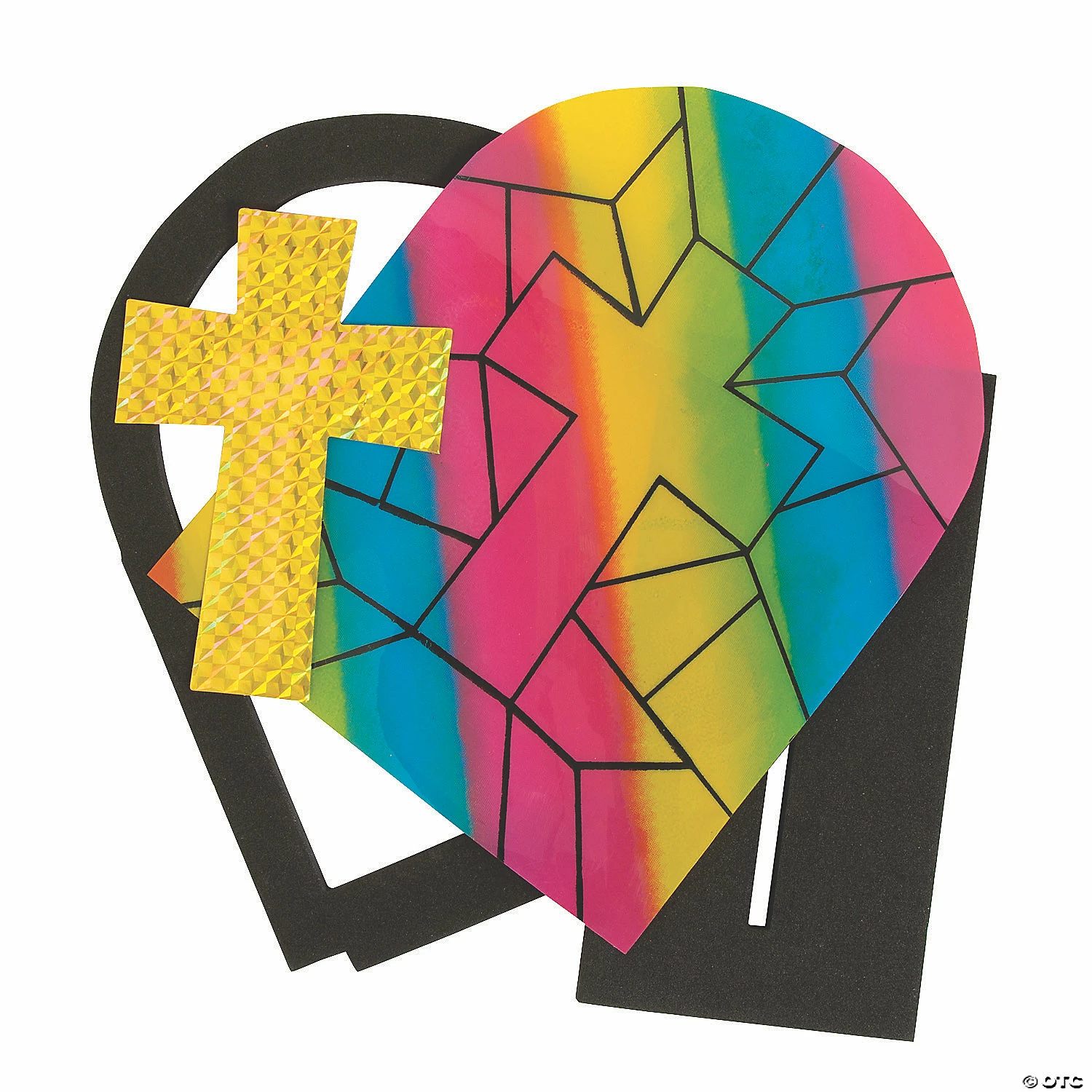Bring the beauty of stained glass to kiddos! A fun and faith-filled addition to religious kids’ crafts, this stand-up accent features a shimmering cross design that really looks like stained glass. Place this in a window sill and watch the light beautifully filter through it! Includes self-adhesive foam pieces, foil stickers and acetate sheets. 6″ x 3″ x 7″ Makes 12. All craft kit pieces are pre-packaged for individual use. Kits include instructions. © OTC3D Stained Glass Window Craft Kit Instructions