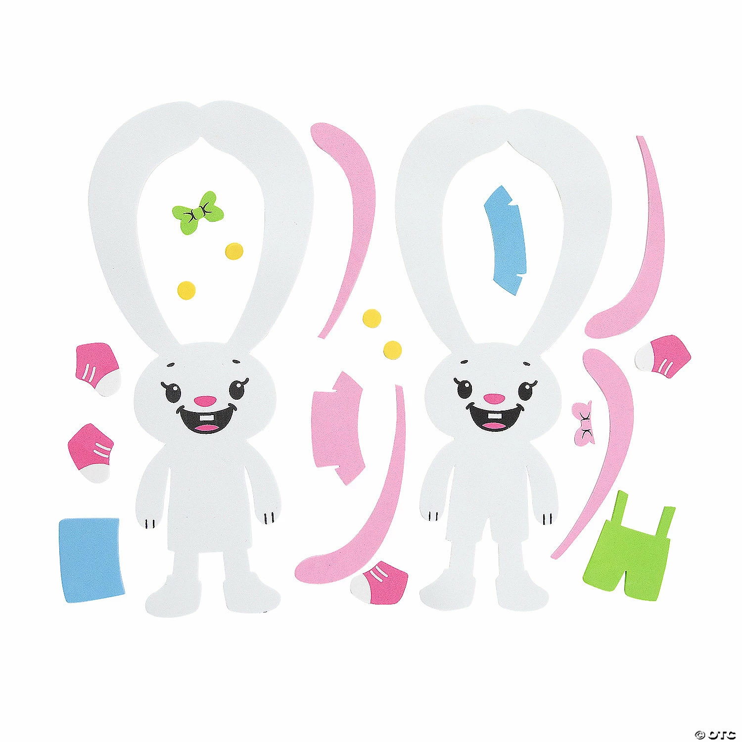 These Easter Bunnies sure love hanging around! Help kids make their own Easter decorations with this fun and simple peel-and-stick craft kit. Use this kit in the classroom as an Easter craft project or have these crafts available at an activity table for kids at an Easter celebration. Kids will love the silly look of these long-eared bunnies that can hang on their doorknob of their bedrooms! Includes self-adhesive foam pieces and foam. 4 3/4″ x 11″ Makes 12. All craft kit pieces are pre-packaged for individual use. Kits include instructions. © OTCLong Ear Bunny Doorknob Hanger Craft Kit Instructions