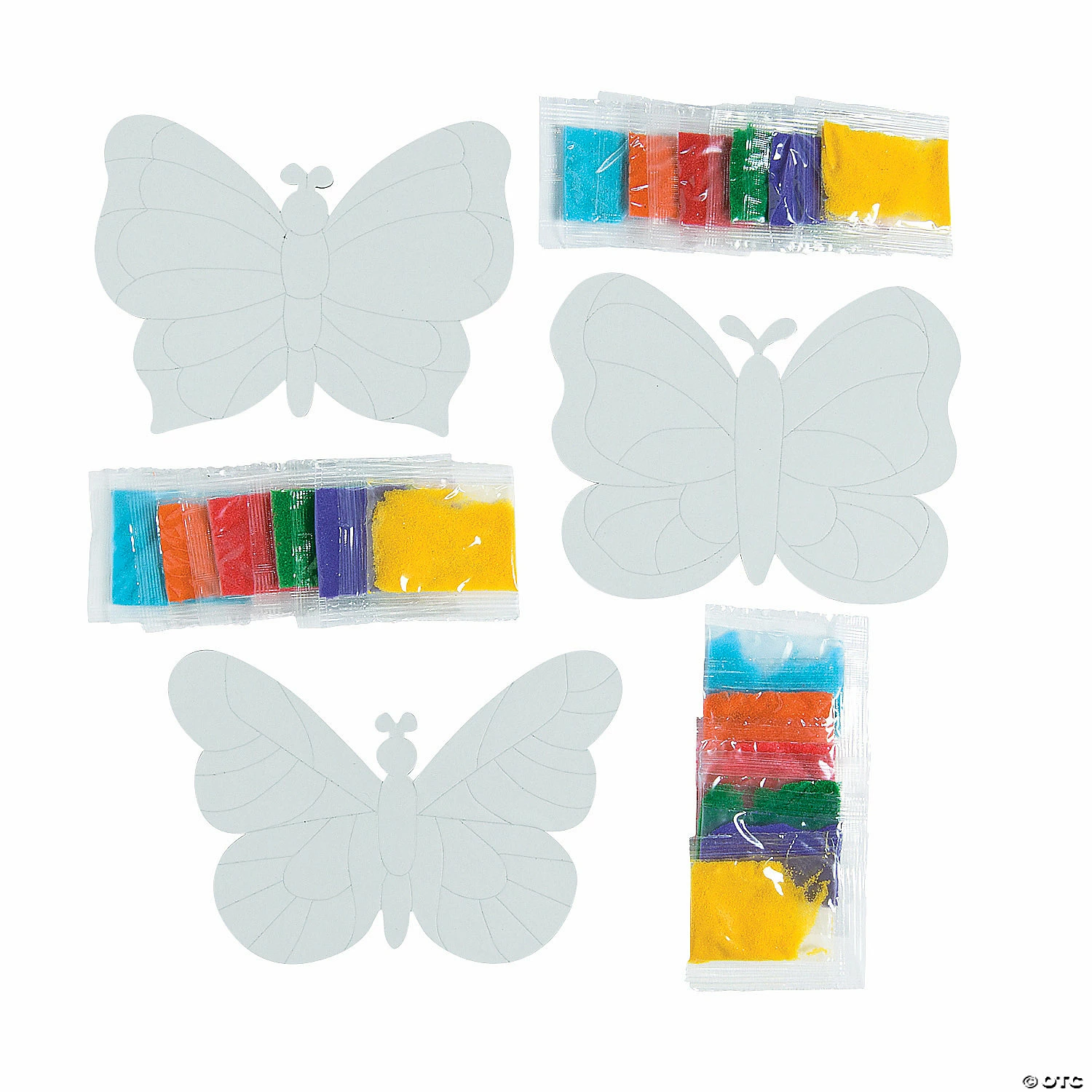 Like a caterpillar emerges as a beautiful butterfly, help your budding artist emerge with these Mosaic Butterfly Sand Art Pictures! They’re the perfect arts and craft project to brighten up a dreary day! Great for day care and classroom projects. Simply peel off the protective covering to reveal an adhesive surface, then sprinkle on the sand and a beautiful butterfly will emerge. Each includes 6 bags of assorted colors of sand. Cardboard. 6″ – 6 1/4″ x 4 1/4″ – 4 3/4″ ยฉ OTC