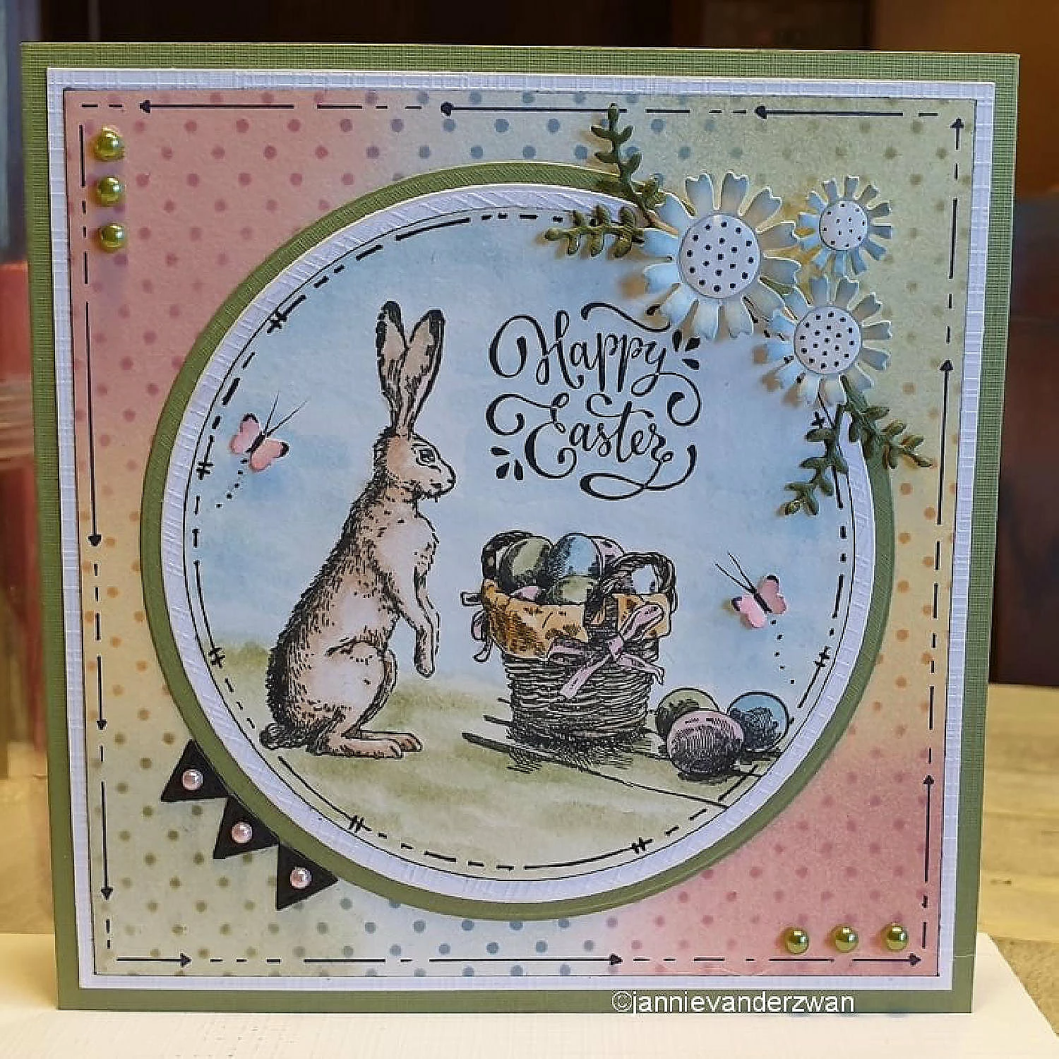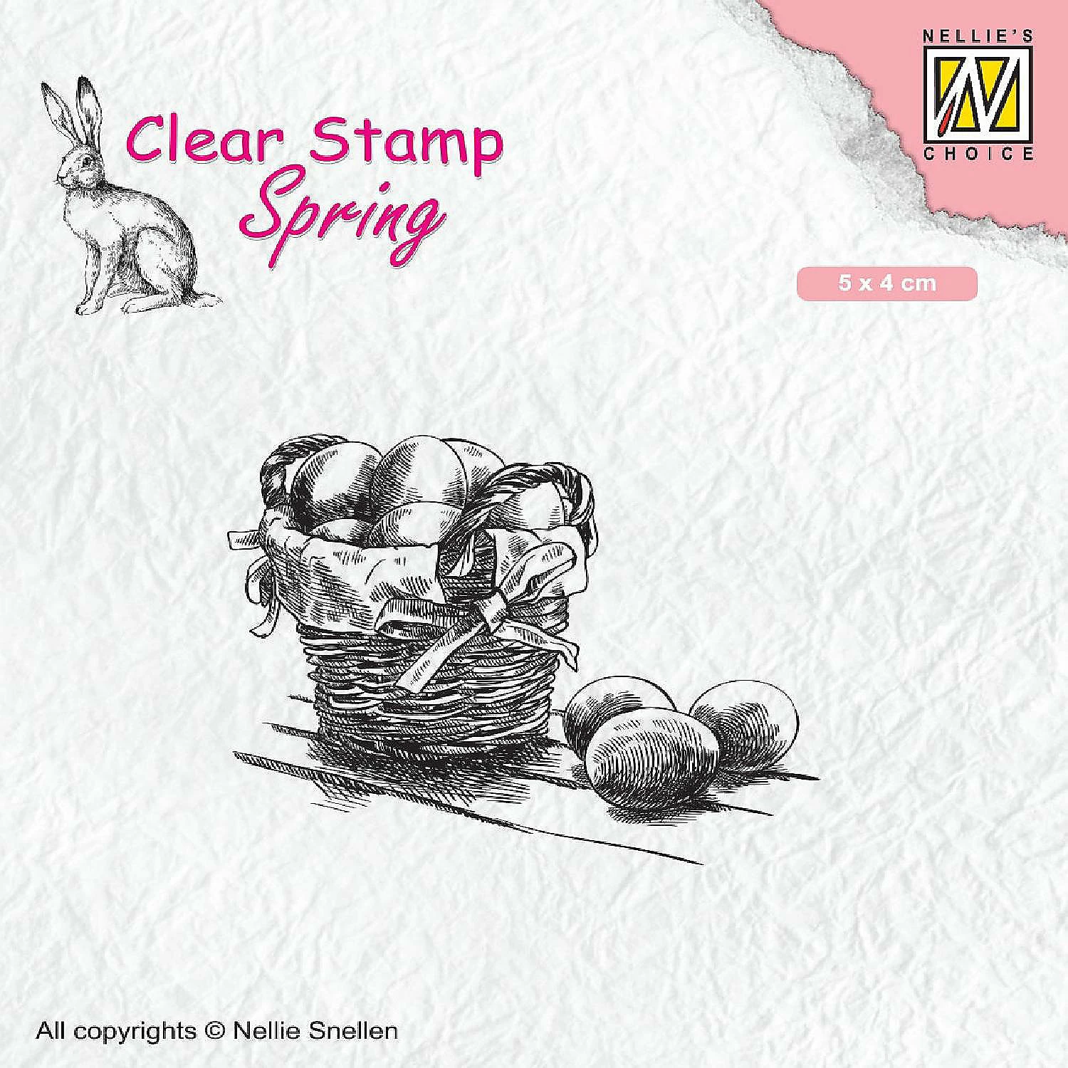 This clear stamp shows a basket of Easter eggs. Size: 2 x 1.6 inches
